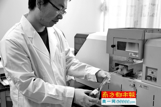 4 .程工正在使用原子吸收設備檢測水樣品。